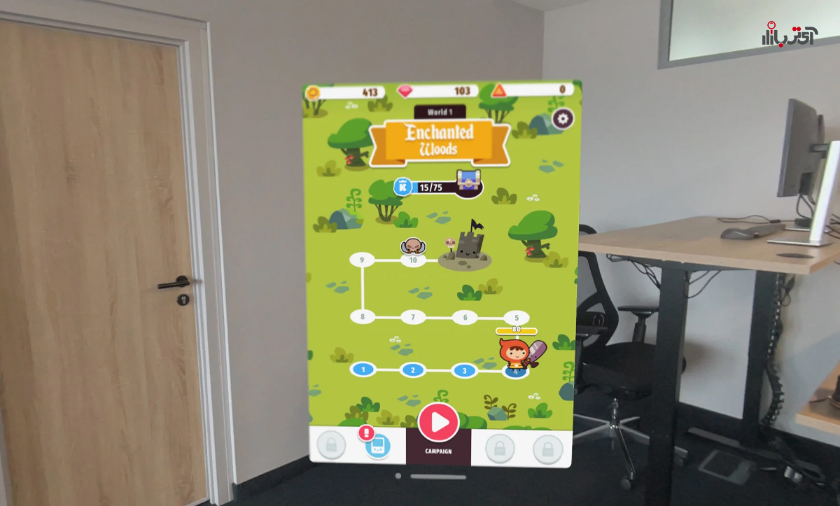 در مورد بازیها، در حال حاضر به نظر میرسد یک کتابخانه متوسط از بازیهای مخصوص Apple Vision و یک کتابخانه نسبتاً غنی از بازیهای آیپد/آیفون وجود دارد که میتوانید روی ویژن پرو نیز اجرا کنید. دستهی اول سعی میکنند تجربه غوطهوری بومیتری برای ویژن پرو ارائه دهند، در حالی که دستهی دوم به صورت پنجرههای برنامه شناور ظاهر میشوند که میتوانند هر کجا که دوست دارید قرار گیرند و به هر اندازه بزرگ یا کوچک شوند. برای عرضه نسل اول، این مجموعه بازی بیش از حد مناسب است، اما برای استفاده حداکثری از قابلیتهای بازی ویژن پرو، قطعاً به یک دسته بازی (کنترلر) نیاز خواهید داشت.