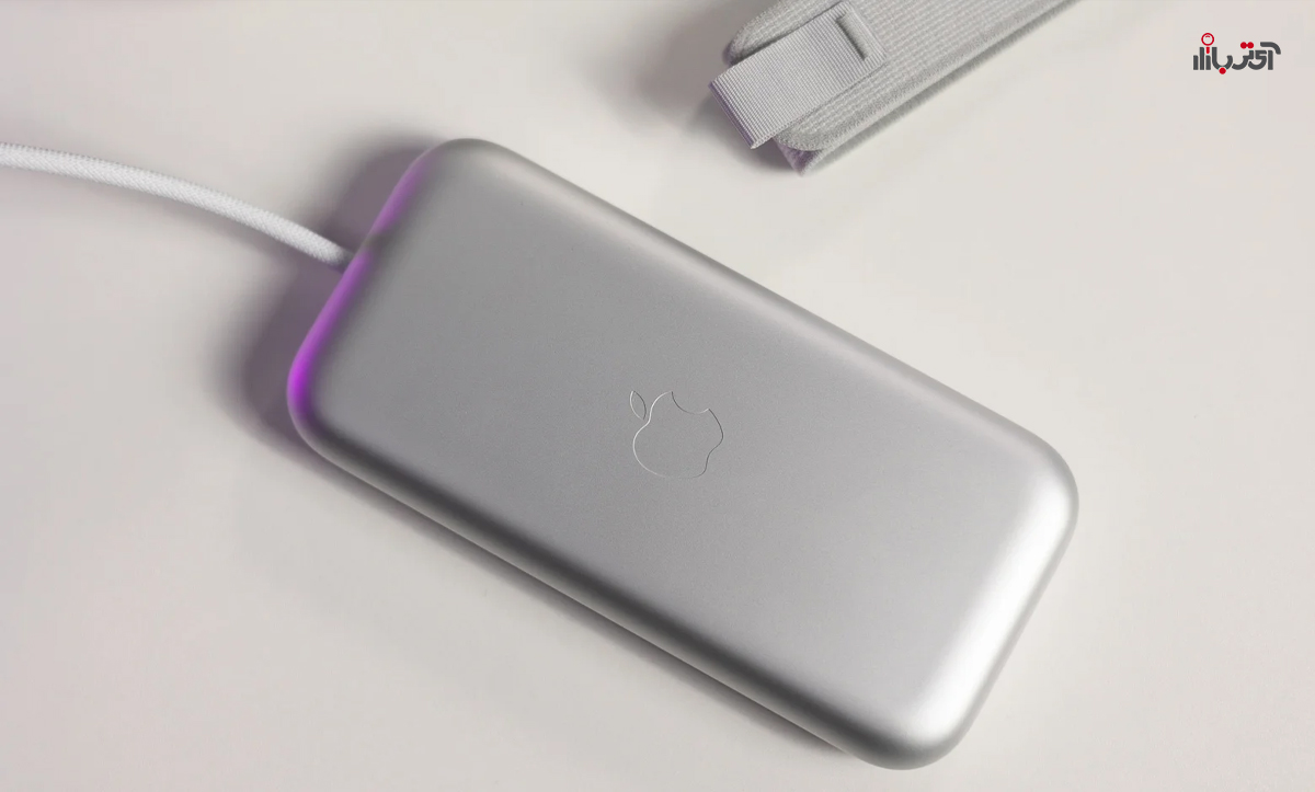 نتیجه این است که یک کابل از هدست خارج میشود و به یک باتری خارجی آلومینیومی نقرهای رنگ تقریباً به اندازه یک گوشی ختم میشود. واضح است که قصد اینجا این است که بتوانید هنگام استفاده از ویژن پرو، باتری را در جیب خود قرار دهید.