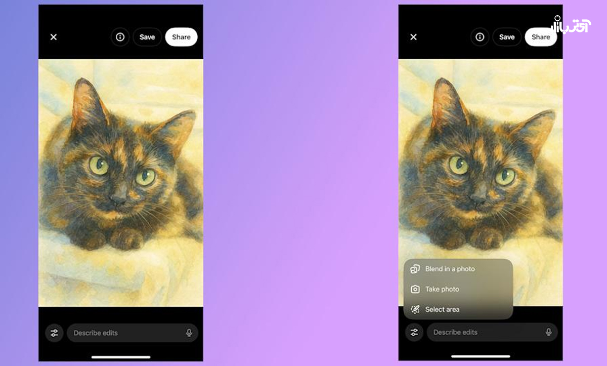 همچنین قابلیتی به نام Blend in a photo وجود دارد که به شما اجازه می‌دهد یکی از عکس‌های خودتان را با تصویری که هوش مصنوعی ساخته، ترکیب (ترکیب چهره یا سبک) کنید.